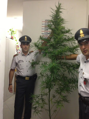 Fra la vegetazione spontanea, vi erano bene occultate anche due rigogliose piante di “cannabis altea”, in avanzato stato di maturazione, alte quasi tre metri. Immediatamente è scattata la perquisizione dell'abitazione, in cui è stata rinvenuta altra marijuana già essiccata pronta per lo smercio.